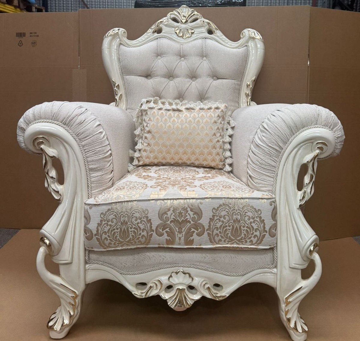 Dieser Sessel von Casa Padrino entfaltet mit seiner opulenten Erscheinung den zeitlosen Glanz barocker Wohnkunst und verleiht jedem Wohnzimmer eine prunkvolle Note.