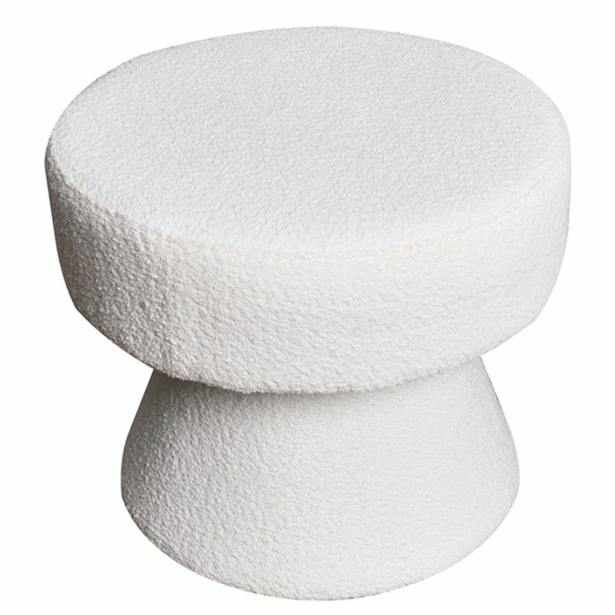 Der weiße Stoffbezug verleiht dem Hocker eine zeitlos elegante Ausstrahlung und sorgt zugleich für ein angenehmes Sitzgefühl. Die komfortable Polsterung bietet hohen Sitzkomfort, während die pflegeleichten und langlebigen Materialien den Hocker besonders alltagstauglich machen.