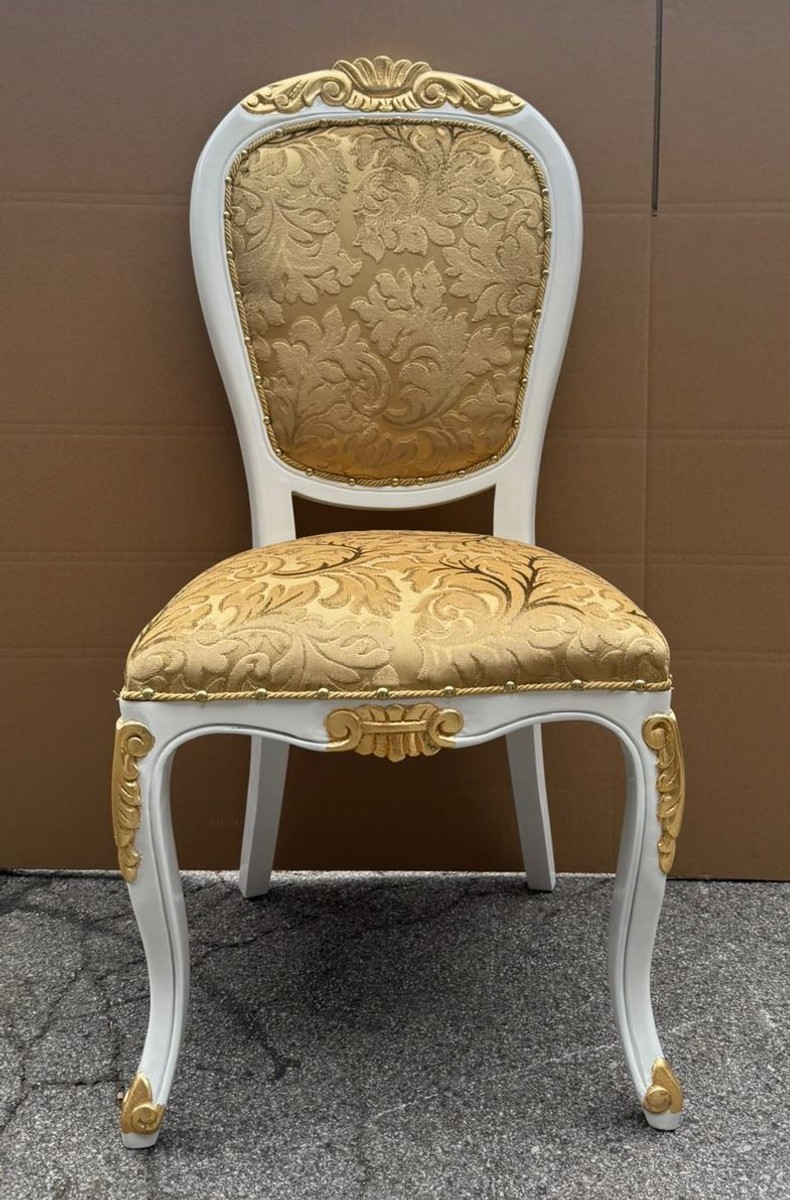 Casa Padrino Luxus Barock Esszimmer Stuhl Gold / Weiß / Gold H. 108 cm - Barock Möbel