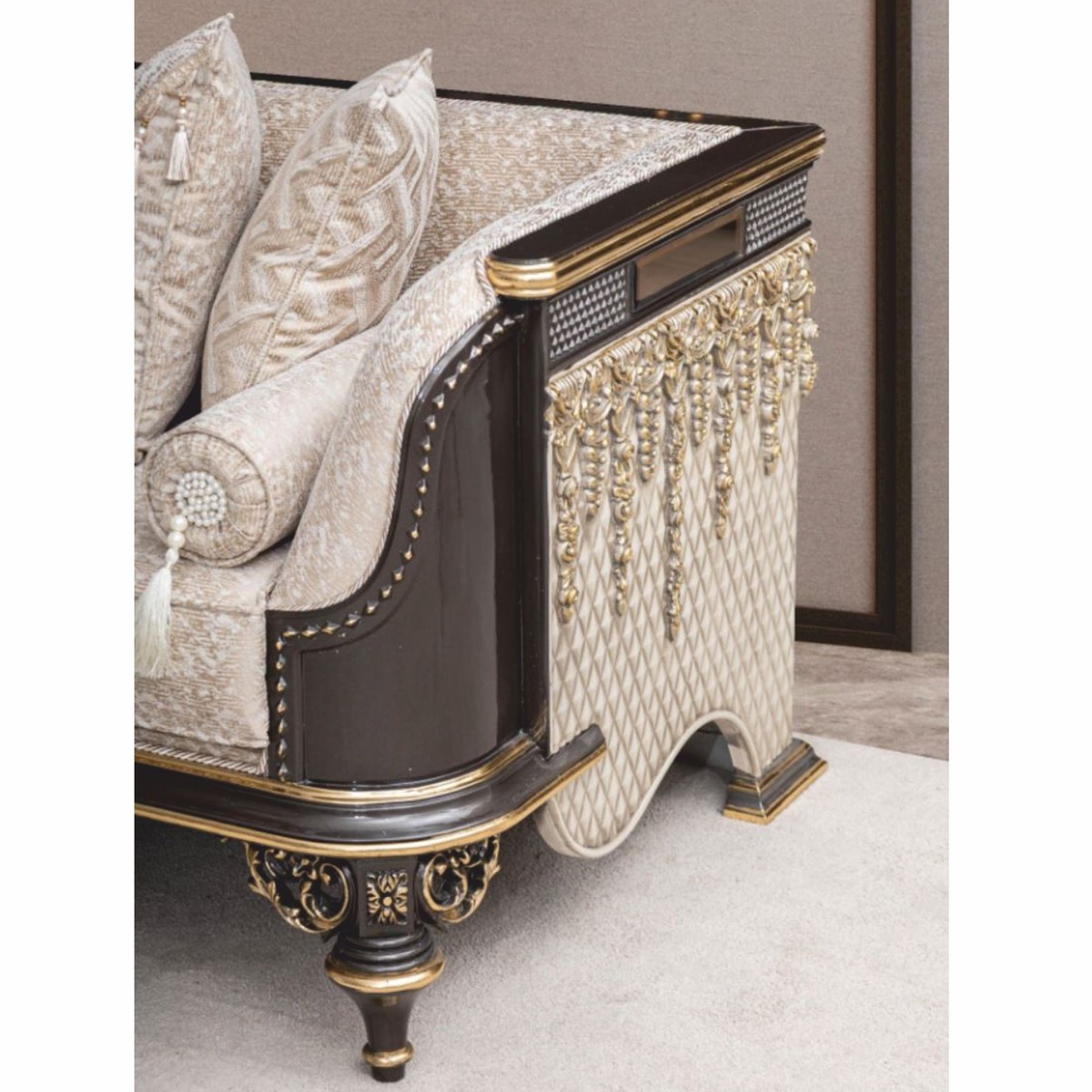 Ein exklusives Luxus Barock Sofa, das klassische Eleganz und zeitlose Wohnkultur zu einem außergewöhnlichen Einrichtungselement vereint.