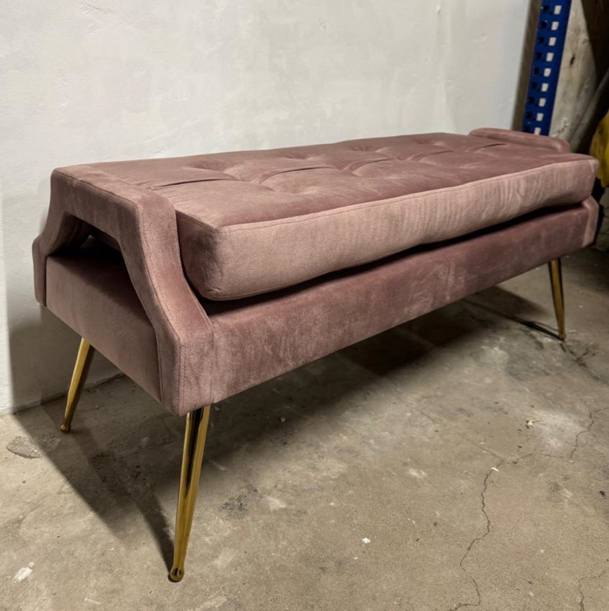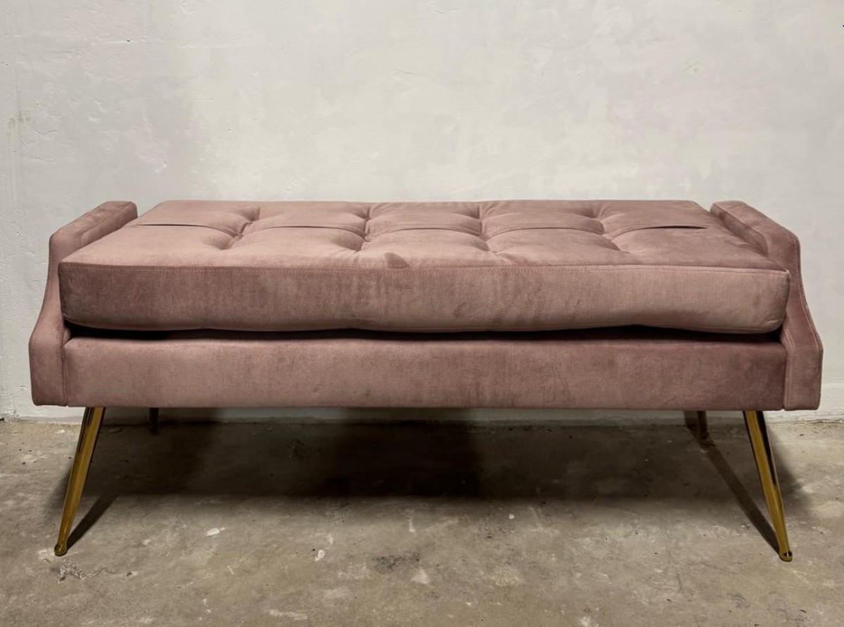 Casa Padrino Luxus Samt Sitzbank Pink / Gold 121,5 cm - Luxus Möbel