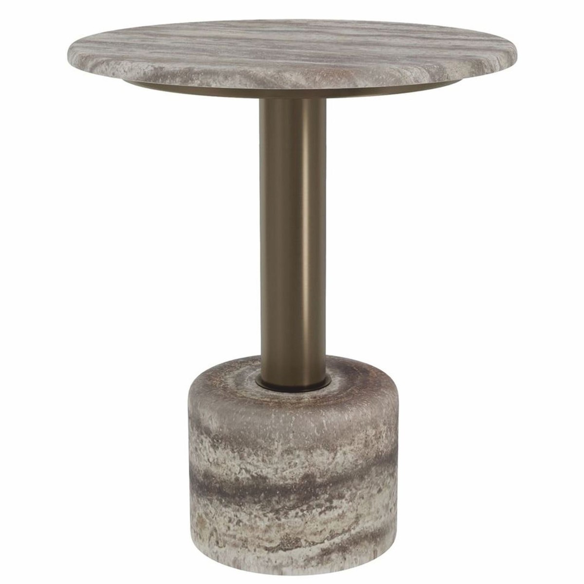 Der exklusive Beistelltisch von Casa Padrino ist ein Meisterwerk anspruchsvoller Wohnkultur und vereint edles Design, Materialien und Verarbeitung zu einem stilvollen Highlight für jede Einrichtung. Mit seiner runden Tischplatte aus grauem Travertin-Naturstein und dem dazu passenden runden Standfuß strahlt er eine zeitlose Ästhetik und luxuriöse Zurückhaltung aus, die jedes Interieur bereichert.