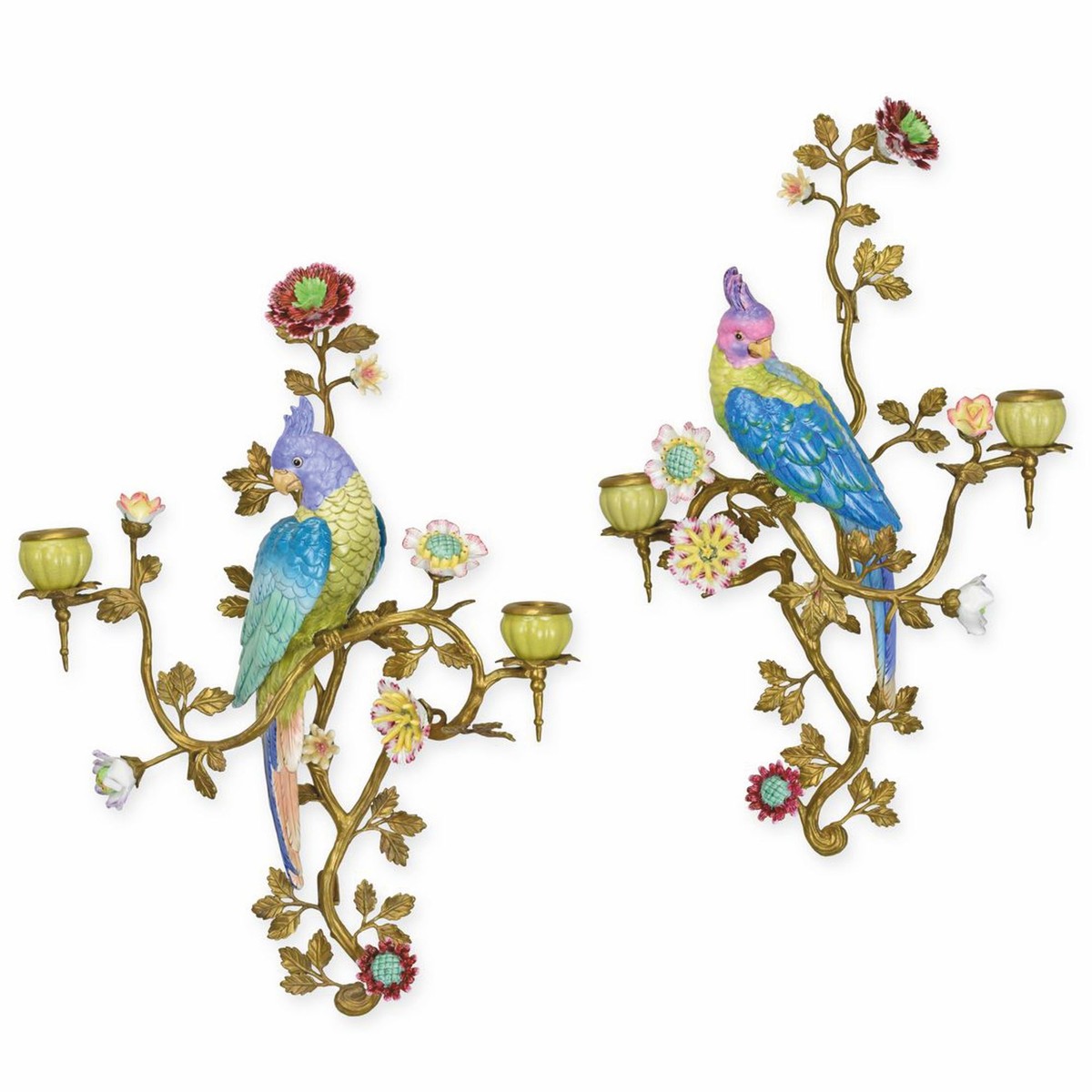 Art Nouveau Wall Candle Holder Set Parrots by Casa Padrino