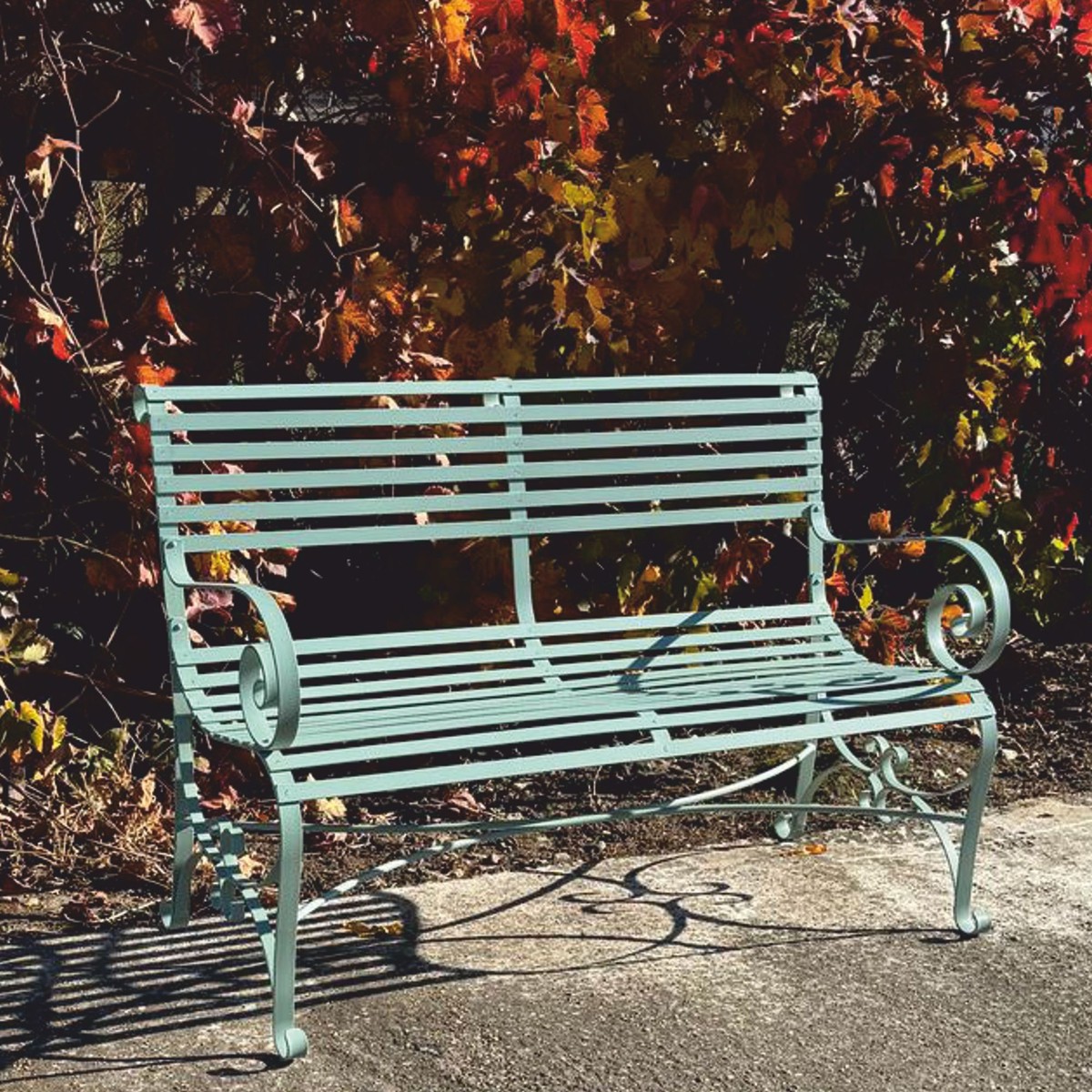Crafted from mint-green wrought iron, the garden bench impresses with its choice of material and meticulous craftsmanship. Carefully hand-forged, each piece has its own unique character and reflects traditional craftsmanship at its finest.
