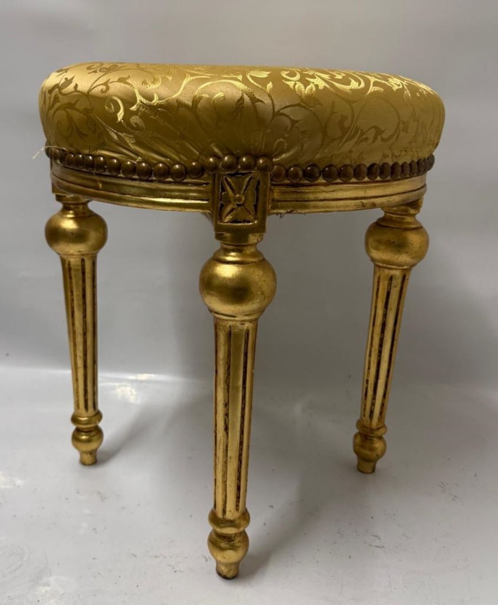 Casa Padrino Barock Hocker Gold / Antik Gold H. 54 cm - Runder Barockstil Sitzhocker