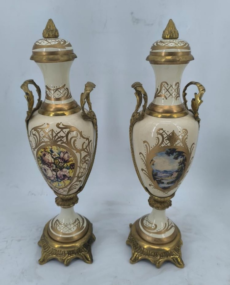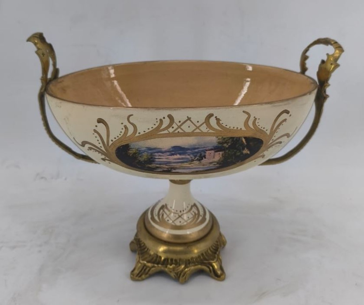 Casa Padrino Baroque Ceramic Vase Set with Bowl Cream / Colorful / Brass - Baroque Style Deco
