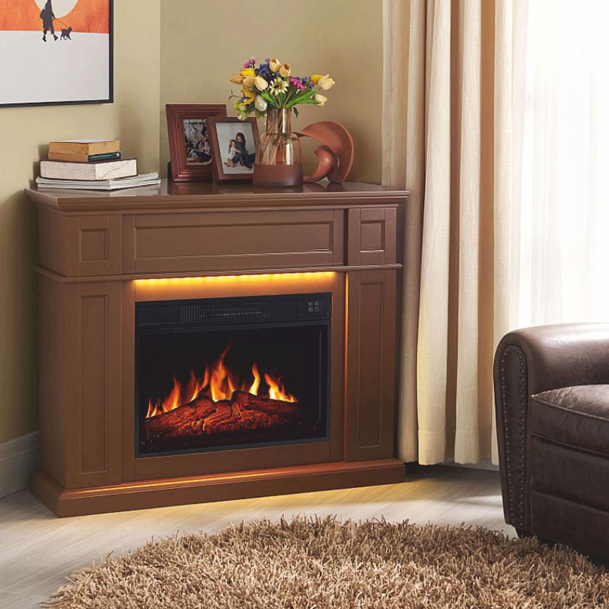 The Casa Padrino LED electric fireplace bathes any room in a warm, atmospheric light, creating a stylish and inviting ambiance.
