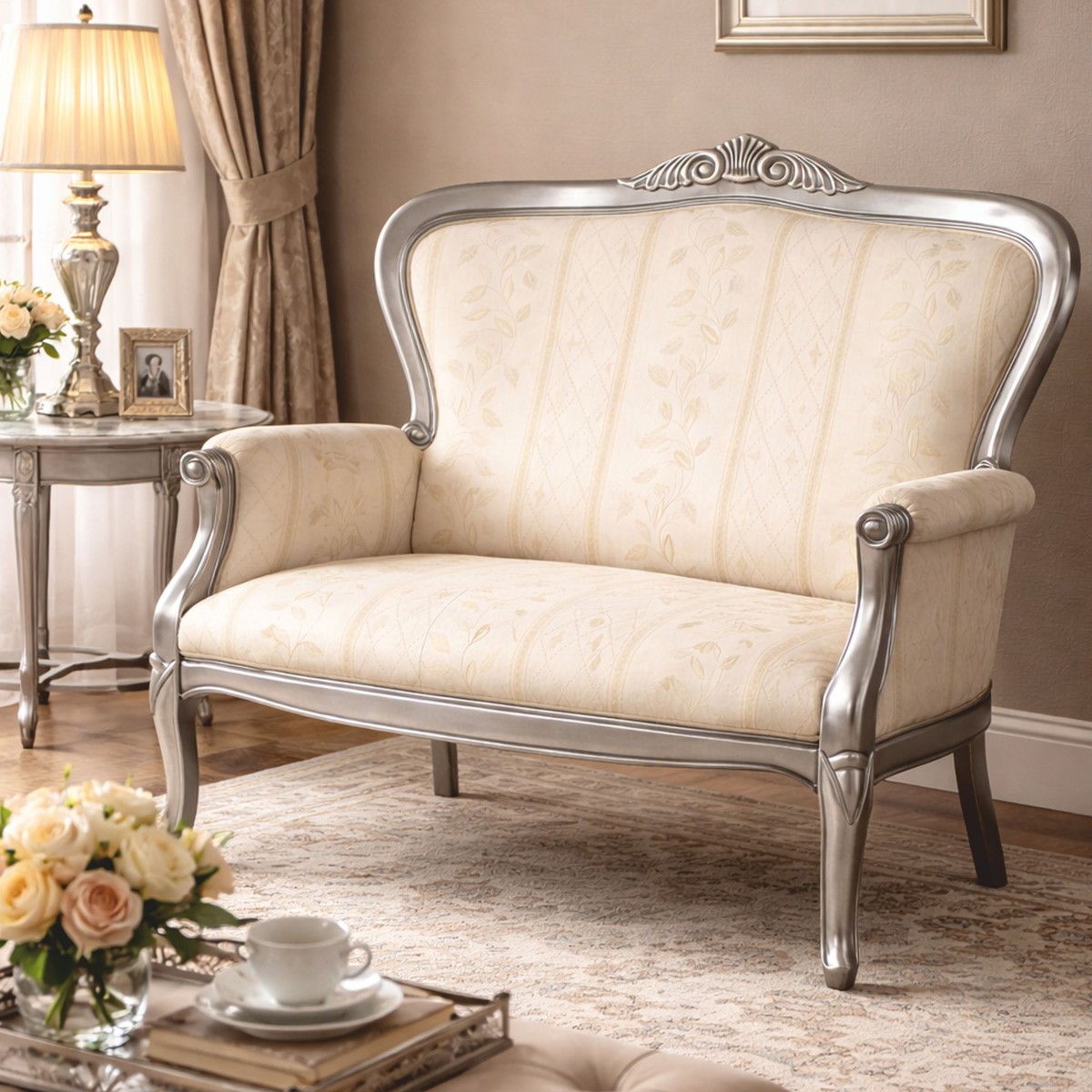 Casa Padrino Luxury Baroque Sofa Cream / Silver 130 cm - Baroque Furniture - Made in Italy