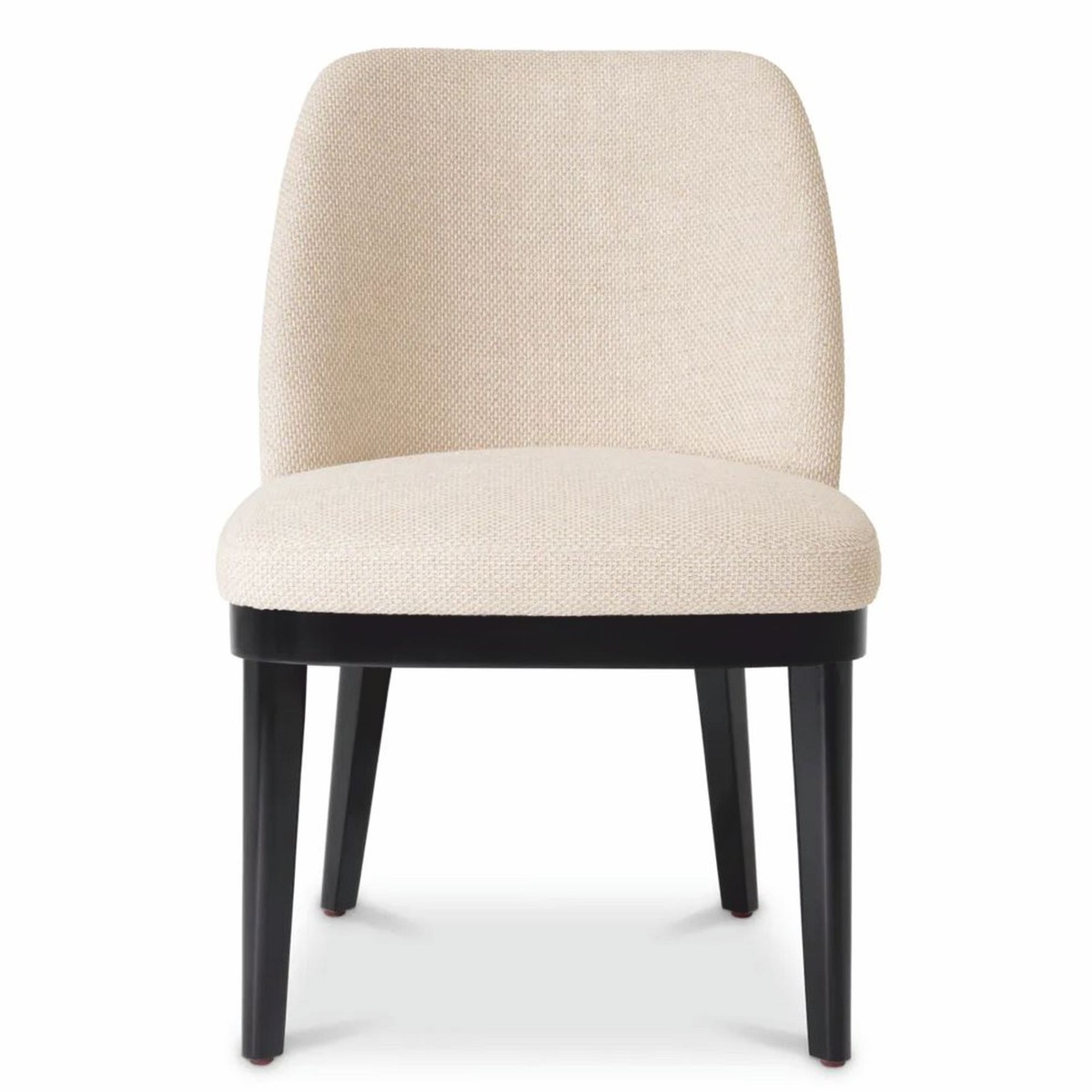 The sturdy frame made of solid black wood forms a stylish contrast to the light-colored fabric upholstery and lends the chair a clear, commanding presence. The ergonomically shaped seat and backrest ensure a particularly comfortable seating experience, providing maximum comfort even during extended periods of sitting.