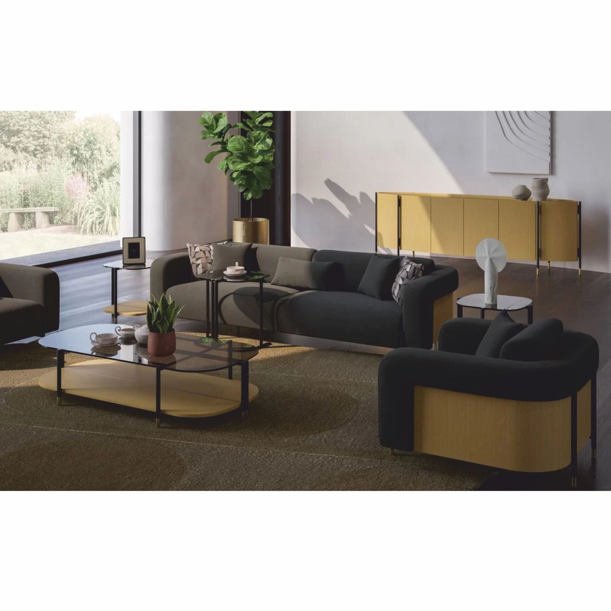 Aparador de lujo de Casa Padrino con tapa de cristal: Elegancia armoniosa en tonos naturales y negro