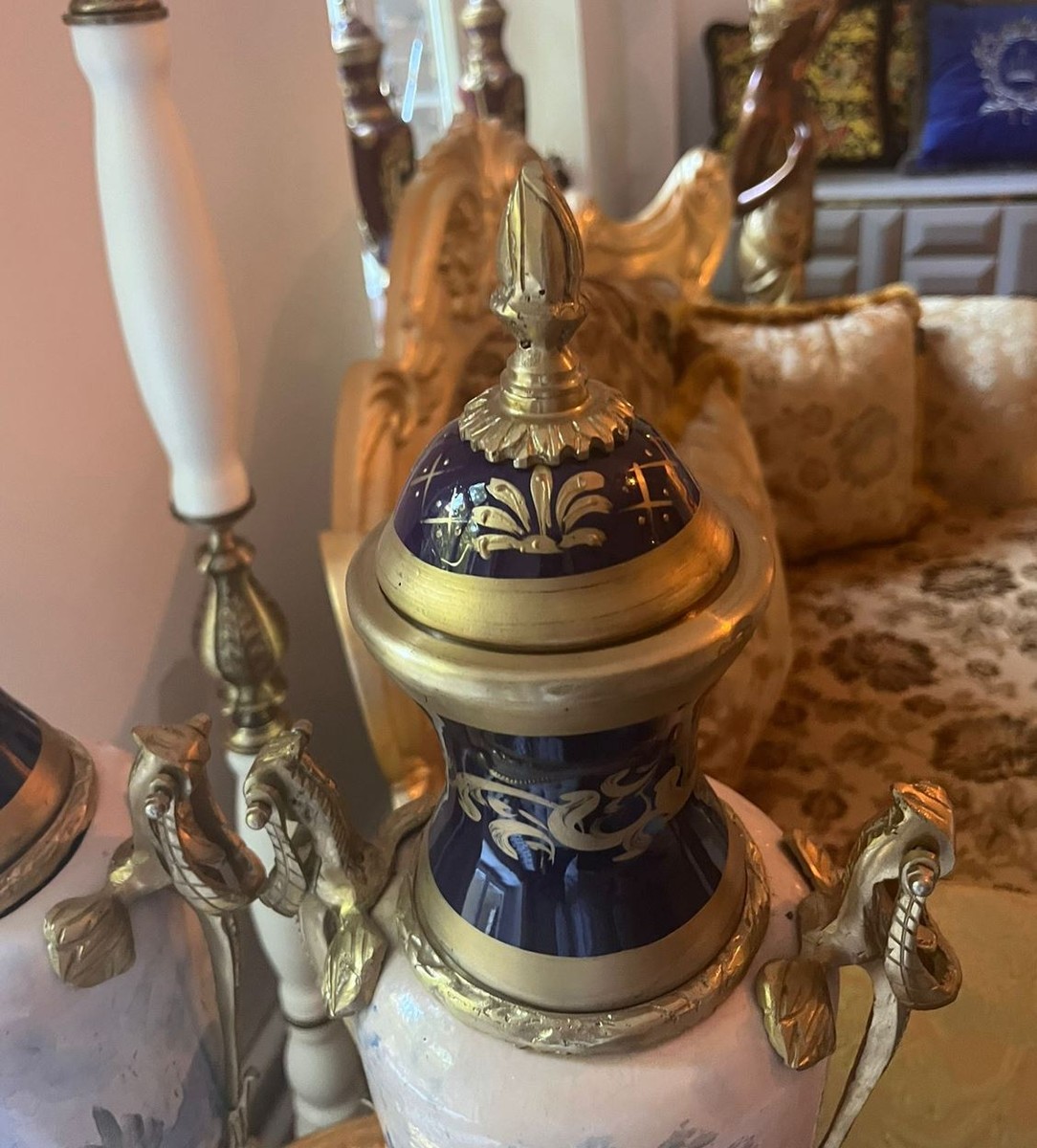 Casa Padrino Barock Deko Keramik Vasen Set Blau / Bunt / Messing H. 65 cm - Barock Interior
