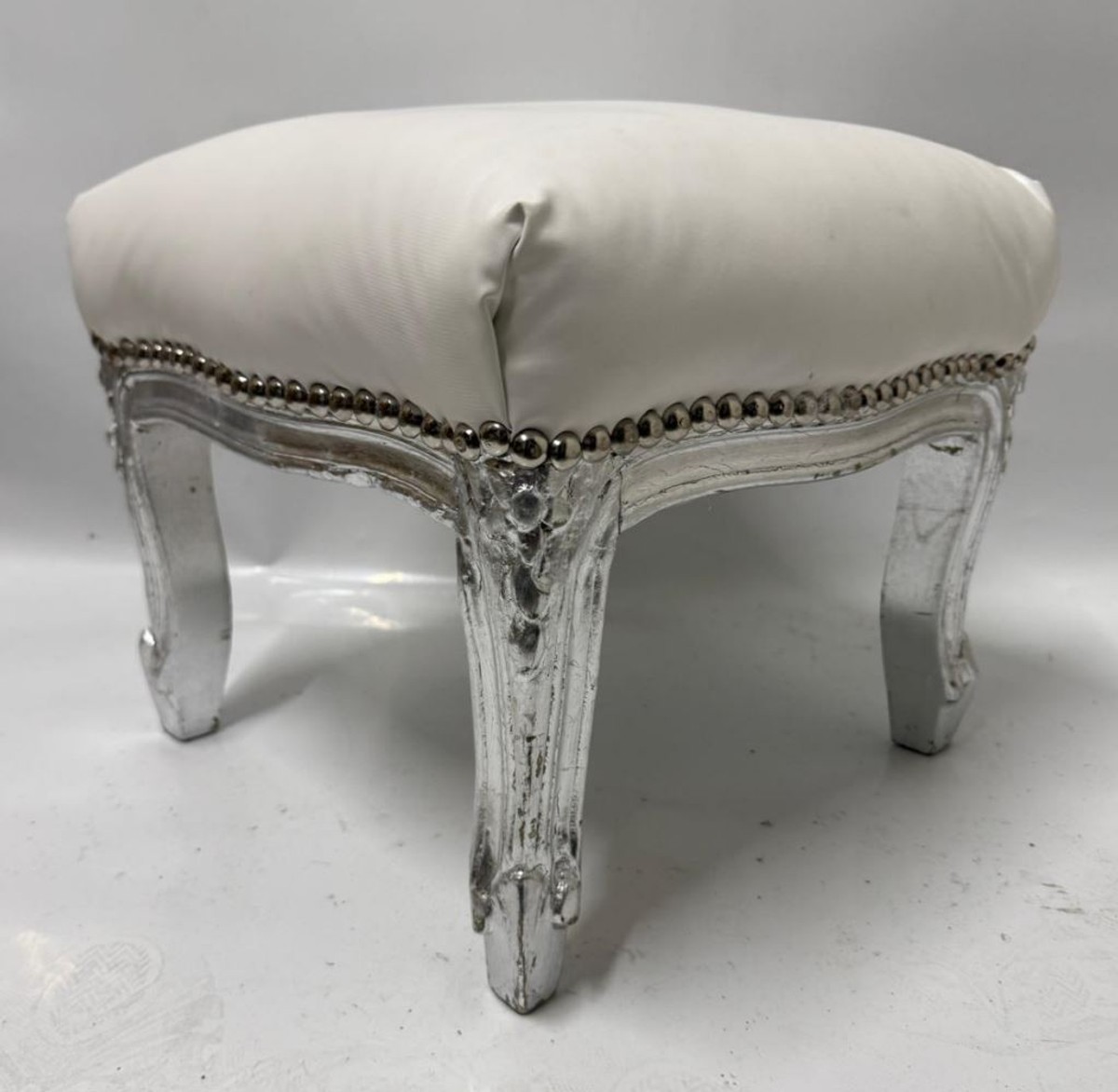 Casa Padrino Barock Kunstleder Fußhocker Weiß / Antik Silber H. 33 cm - Barockstil Hocker