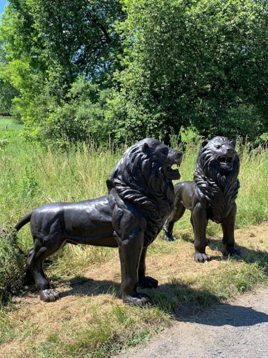 Gracias a su robusta construcción de bronce resistente a la intemperie, estos leones son ideales para uso permanente en exteriores y conservarán su imponente aspecto durante muchos años. La elegante pátina realza su carácter de alta calidad y confiere a las figuras un toque artístico y atemporal.