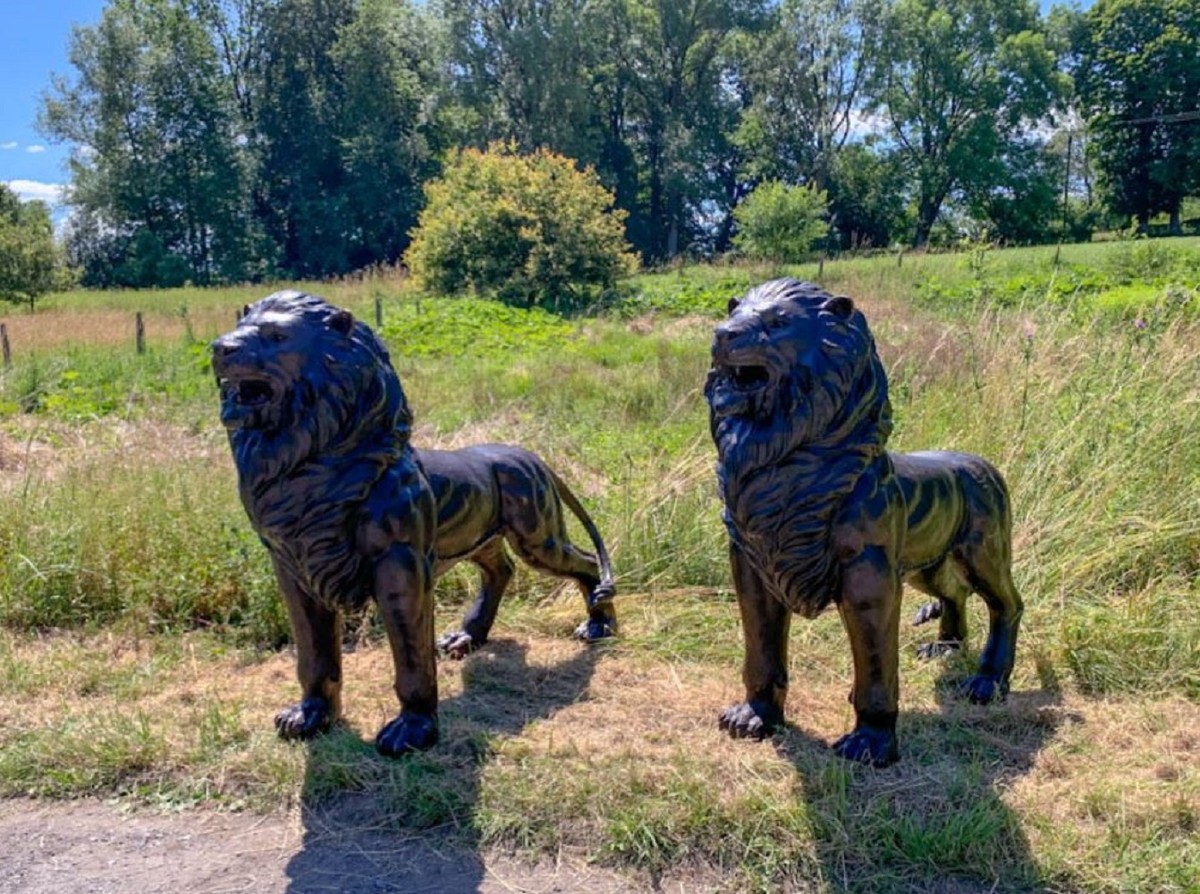 Los dos leones de bronce irradian fuerza, elegancia y dignidad, dotando a cualquier espacio exterior de un ambiente prestigioso, casi majestuoso. Ya sea como una pareja imponente en la entrada, como llamativas esculturas de jardín o como un exclusivo elemento decorativo en amplias terrazas, este lujoso conjunto de esculturas decorativas sin duda atraerá todas las miradas.