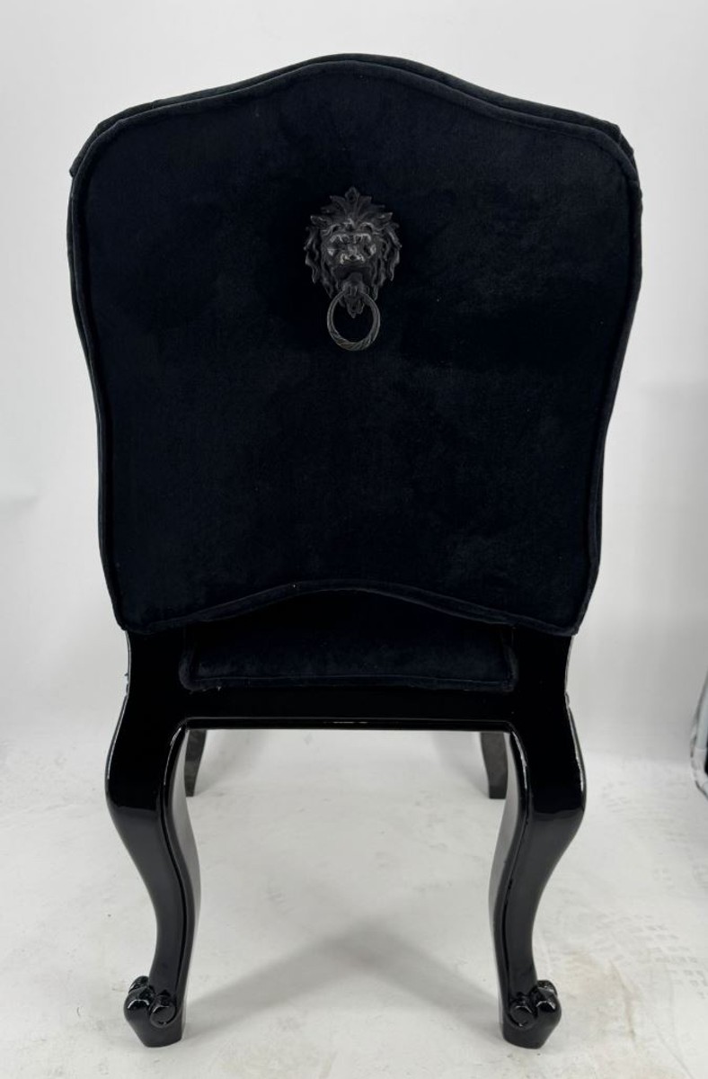 Casa Padrino Luxus Barock Esszimmer Stuhl Castle mit Messing Löwengriff Schwarz - Barock Möbel