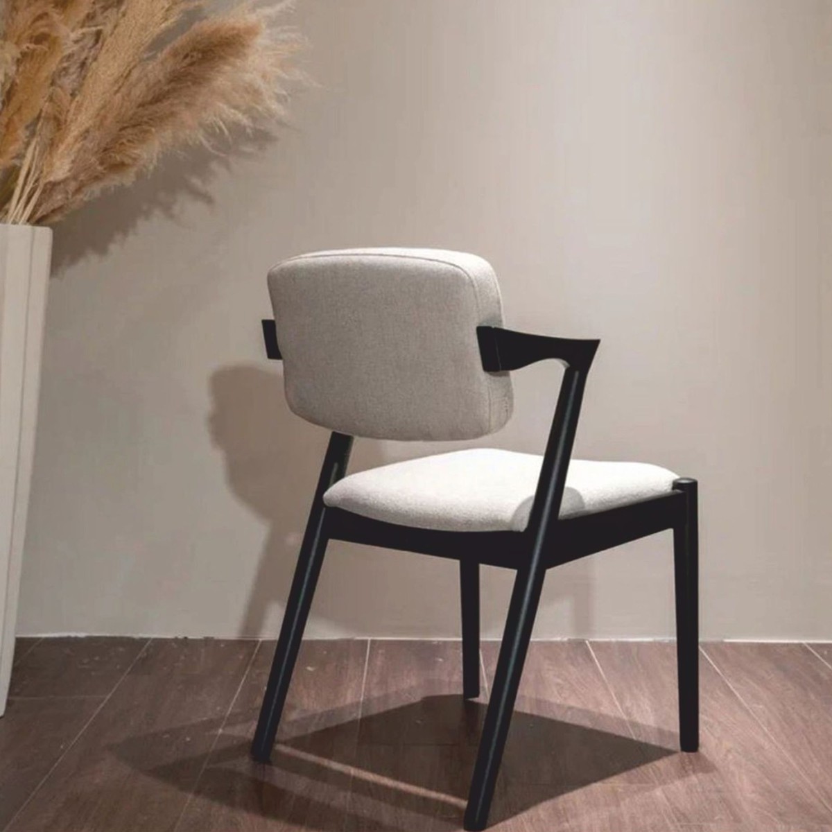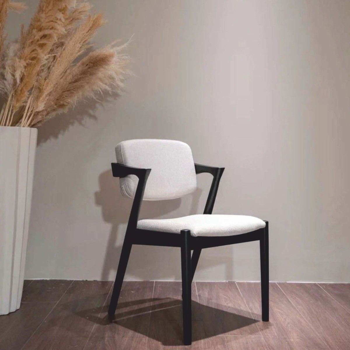 La silla de comedor de lujo con reposabrazos de Casa Padrino es un sofisticado objeto de diseño que combina armoniosamente materiales de primera calidad, un diseño elegante y una comodidad excepcional. Su elegante tapizado en tela blanca crea un ambiente luminoso, acogedor y elegante. La estructura de madera maciza lacada en negro contrasta con estilo y realza la expresividad moderna de la pieza.