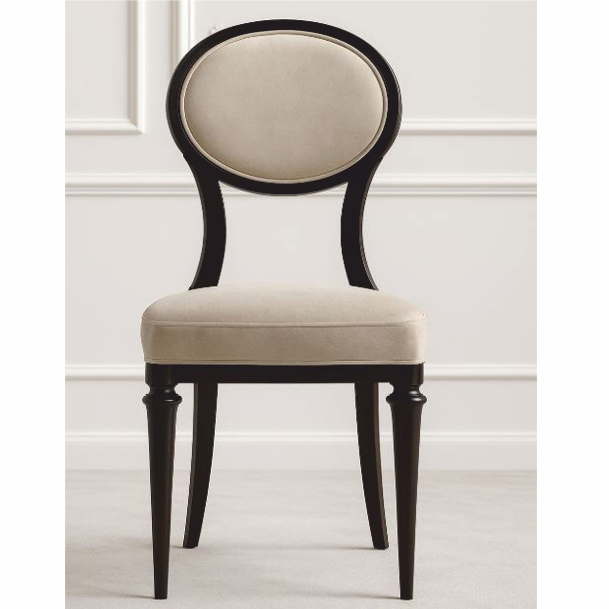 La chaise de salle à manger Art Déco de luxe Casa Padrino est un chef-d'œuvre de design classique et de savoir-faire artisanal. Avec son élégant revêtement en tissu beige et sa structure en bois massif laqué noir, elle incarne l'élégance raffinée, l'harmonie esthétique et un confort d'assise optimal.