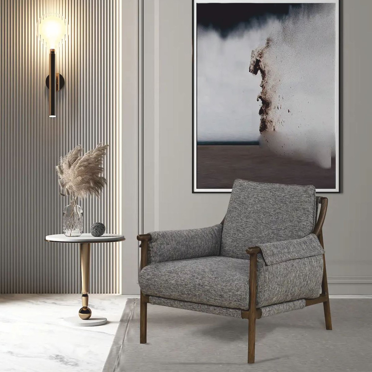 Son revêtement confortable et ses accoudoirs garnis de plumes d'oie garantissent une assise d'une douceur incomparable, alliant confort et luxe à la perfection.