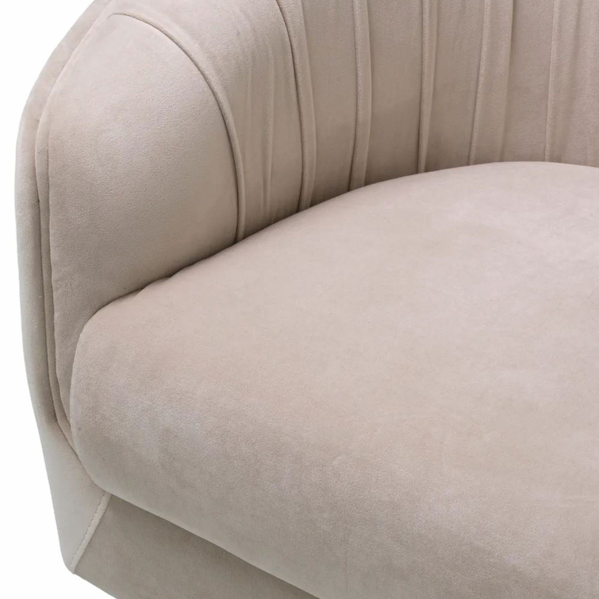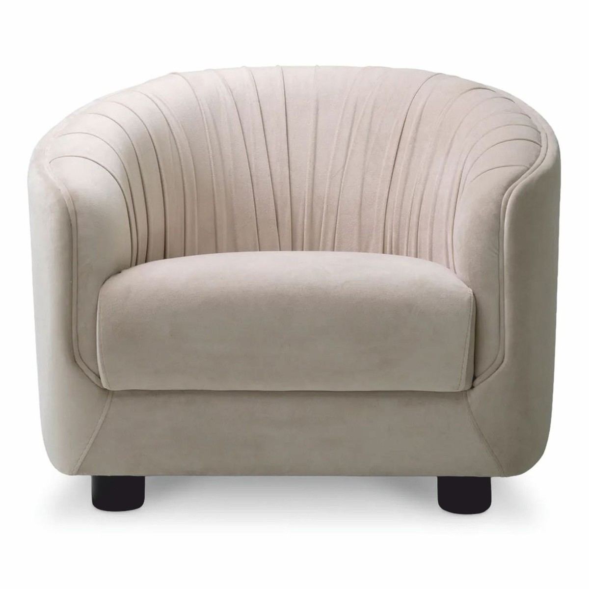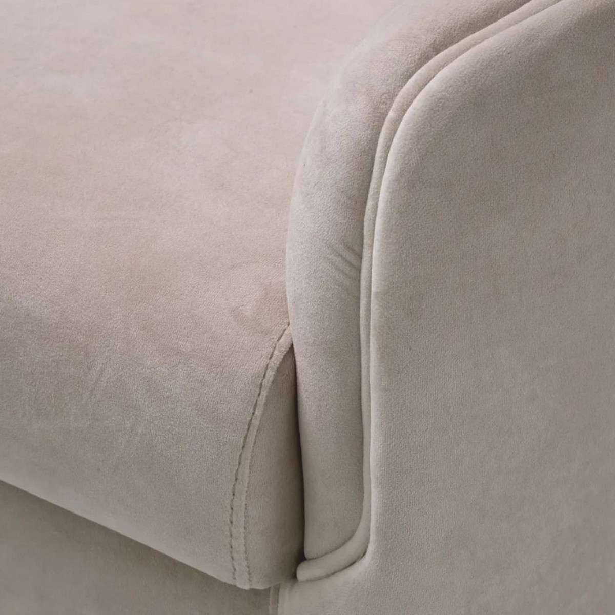 Le doux revêtement en velours assure une assise particulièrement agréable, tandis que le matériau facile d'entretien et durable rend ce fauteuil idéal pour un usage quotidien.