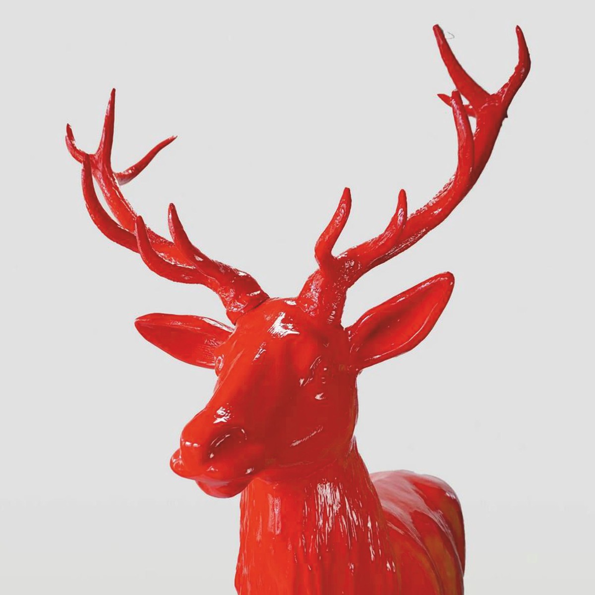 Fabriquée en stratifié de fibre de verre rouge résistant aux intempéries, la sculpture de cerf impressionne par sa grande stabilité, sa durabilité et sa résistance aux éléments. Sa couleur intense souligne son caractère sculptural et crée un style moderne et expressif.