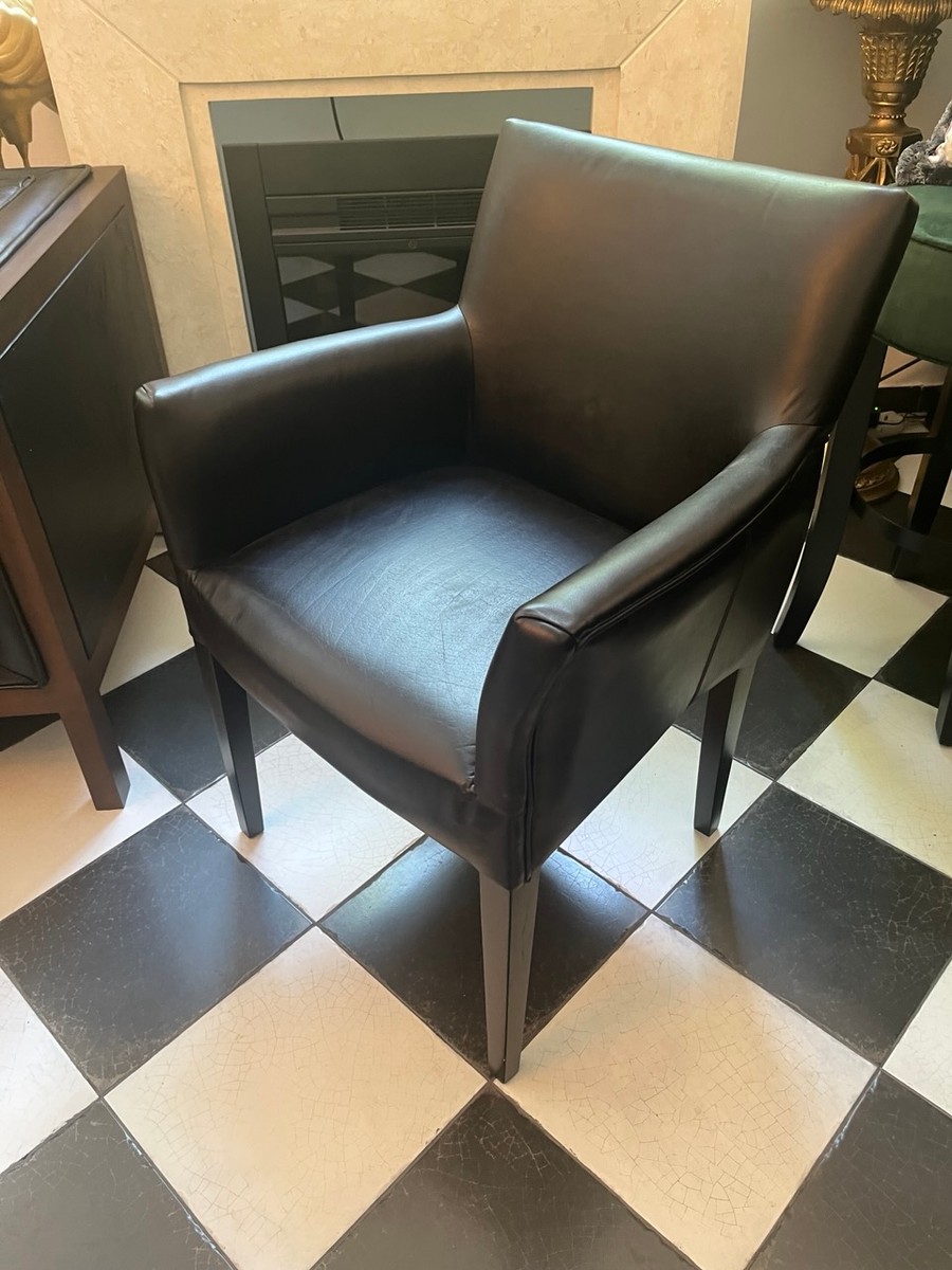 Dieser elegante Armlehnstuhl von Casa Padrino vereint zeitlose Formensprache mit hochwertigen Materialien. Der Bezug aus echtem Leder in edlem Schwarz, kombiniert mit stabilem Massivholzgestell und weicher Polsterung, bietet Komfort und Stil in einem. Ideal für moderne Esszimmer, Büro- oder Loungebereiche.