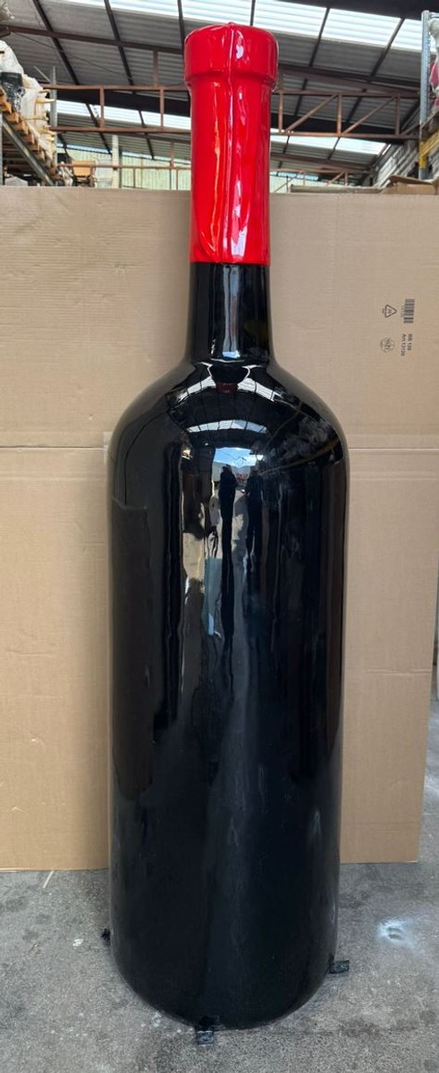 Casa Padrino XXL Deko Weinflasche Schwarz / Rot H. 200 cm - Garten Deko