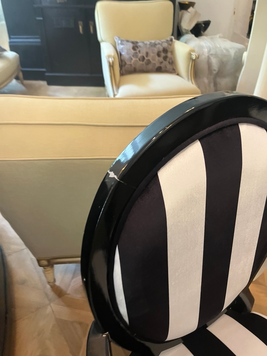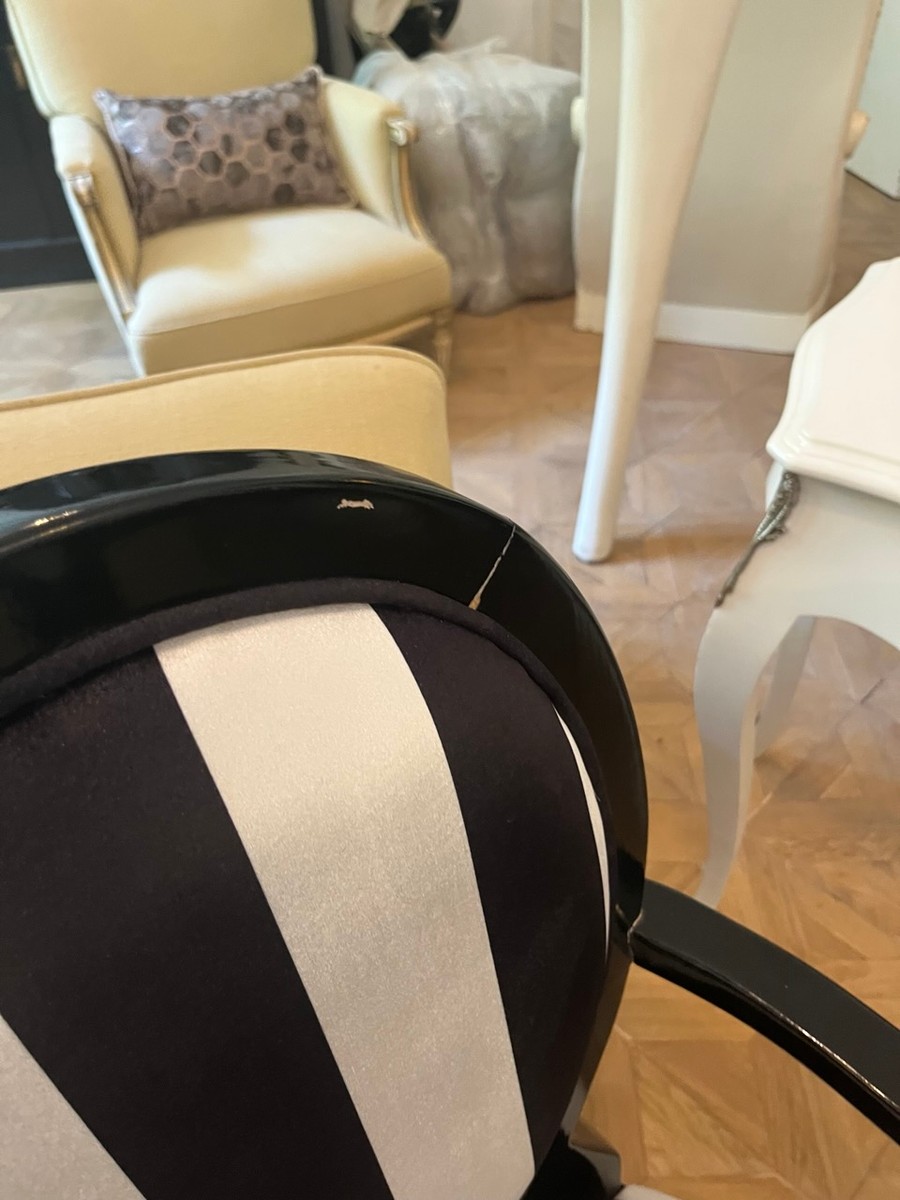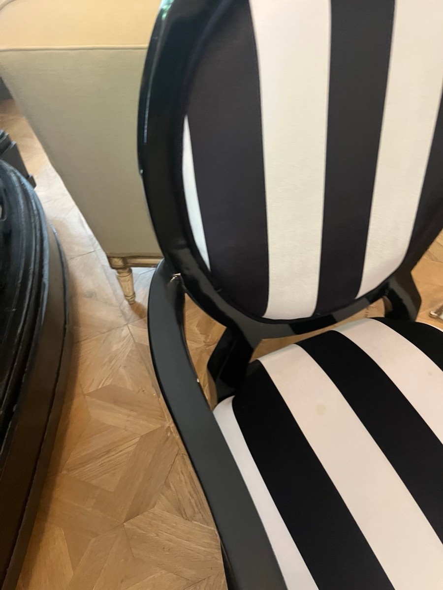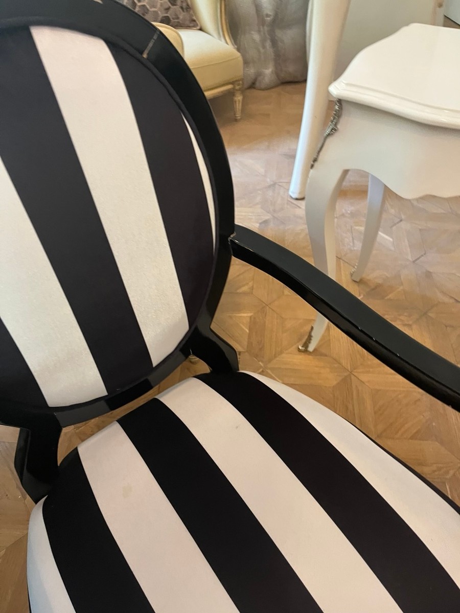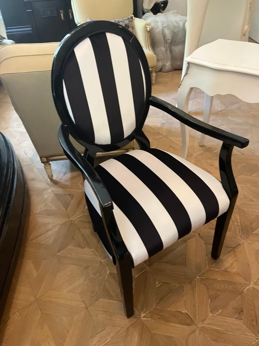 Casa Padrino Antik Stil Armlehnstuhl Schwarz Weiß Gestreift – Patina & Gebrauchsspuren *EB**