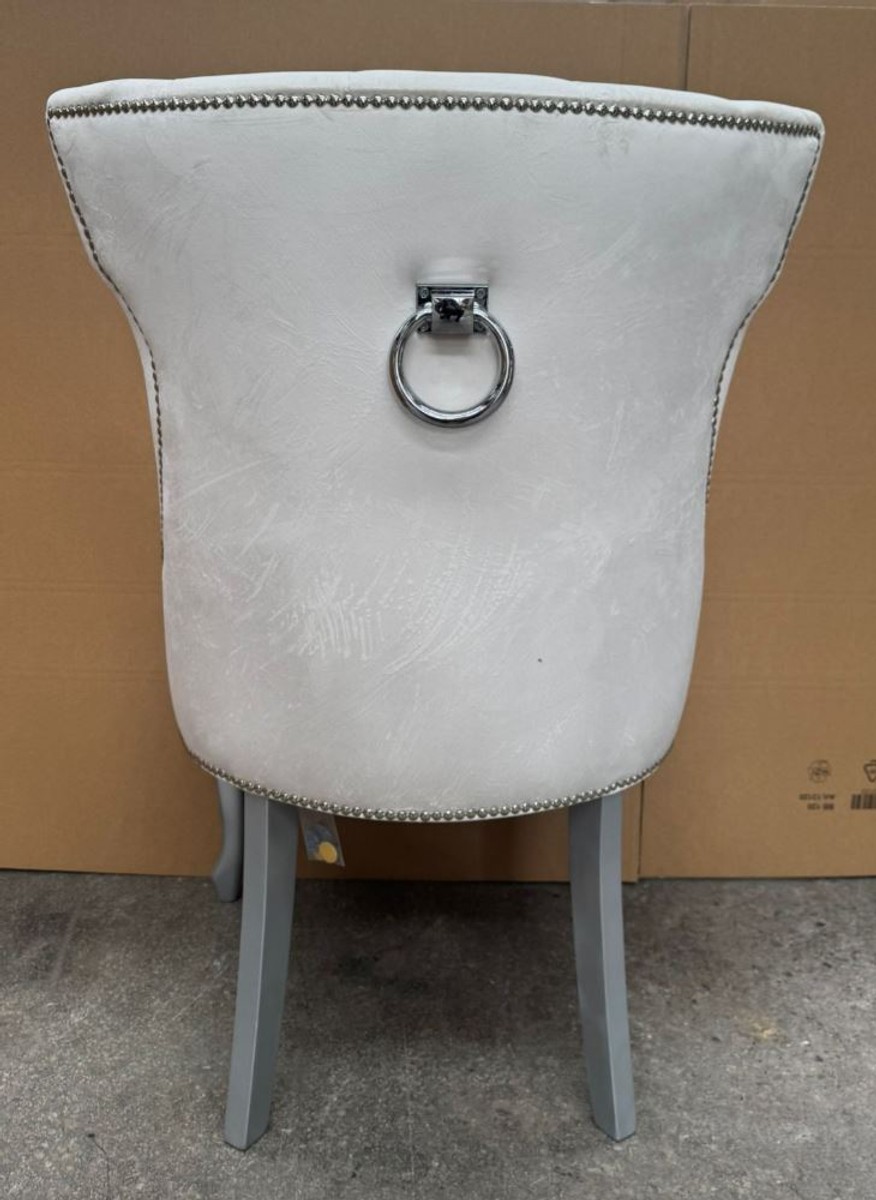 Casa Padrino Art Deco Esszimmer Stuhl Weiß / Silber / Grau H. 97 cm - Esszimmer Möbel