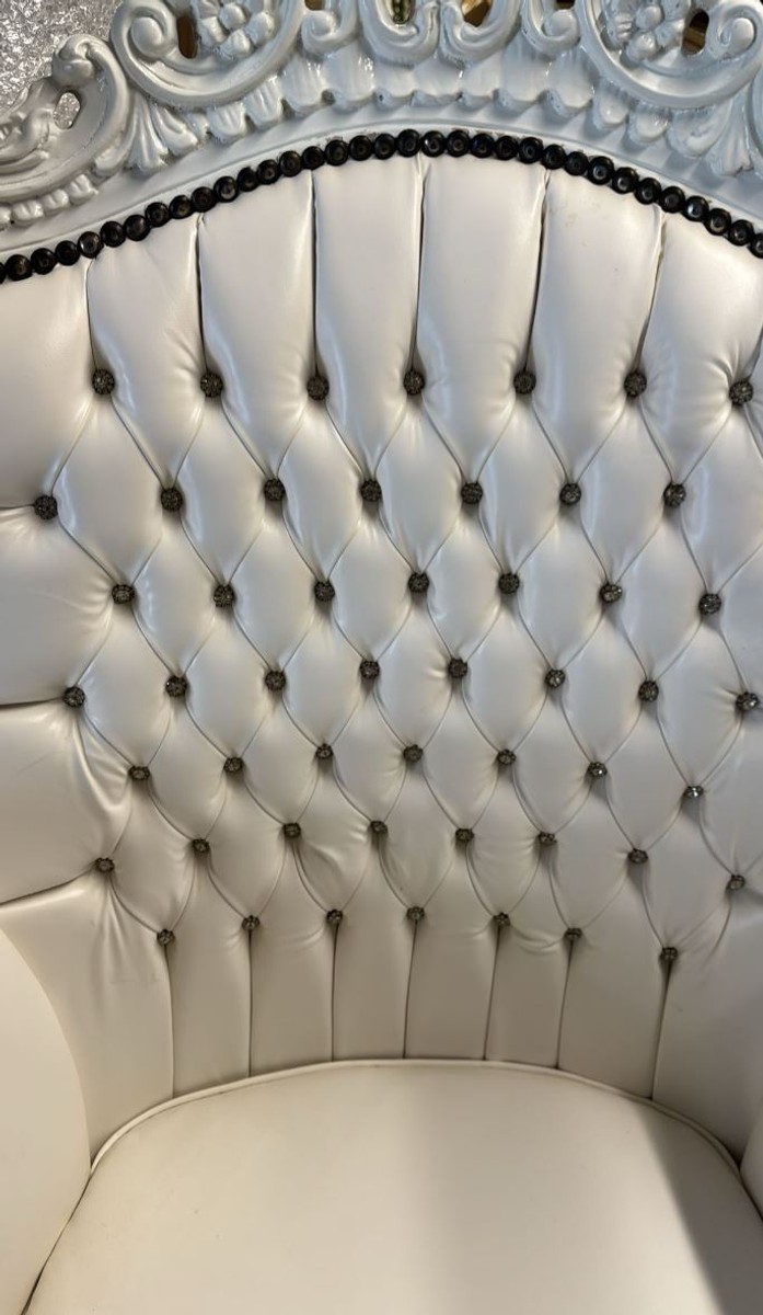 Casa Padrino Barock Kunstleder Sessel Al Capone mit Glitzersteinen Weiß H. 128 cm