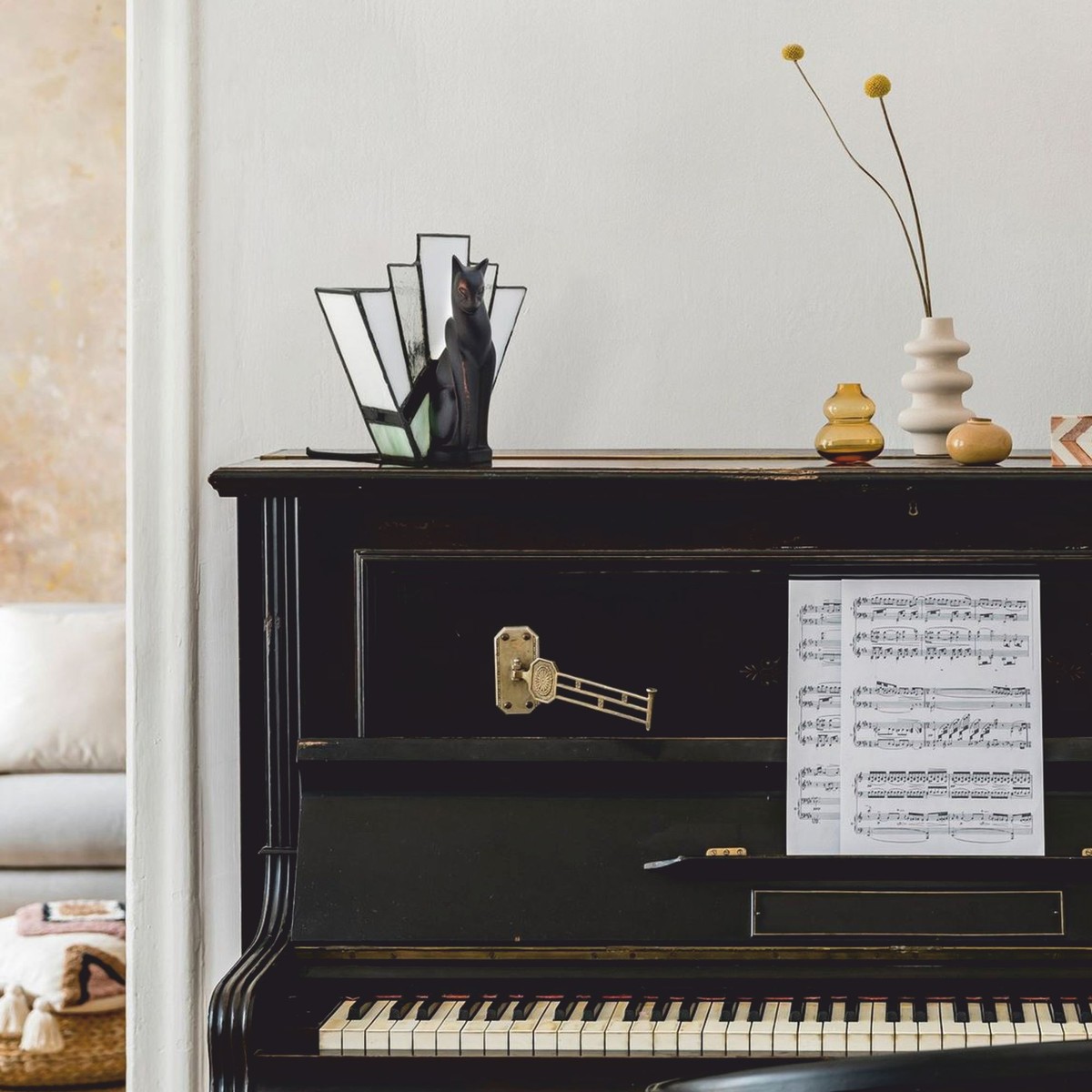 Casa Padrino Lampada da Tavolo Art Deco Tiffany Gatto Nero / Bianco A. 18,5 cm