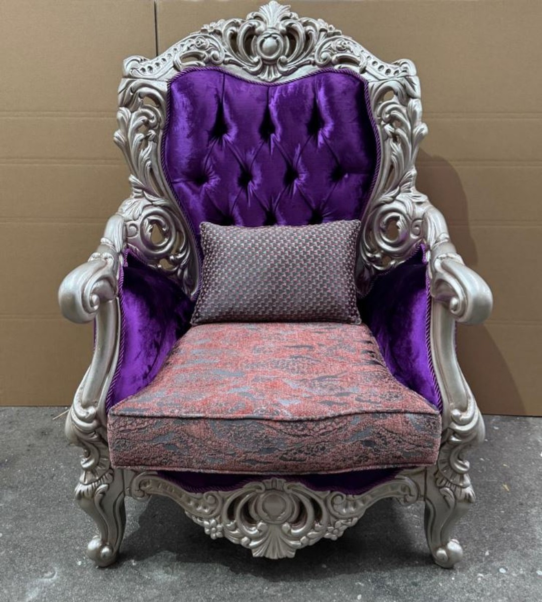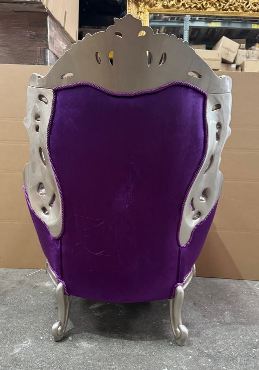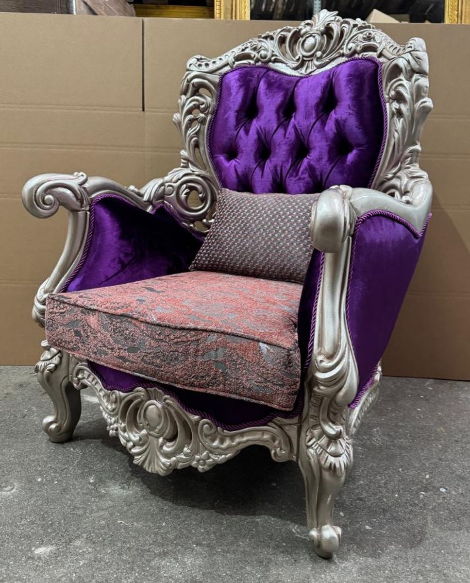 Casa Padrino Luxury Baroque Living Room Armchair Purple / Silver - Baroque Style Furniture