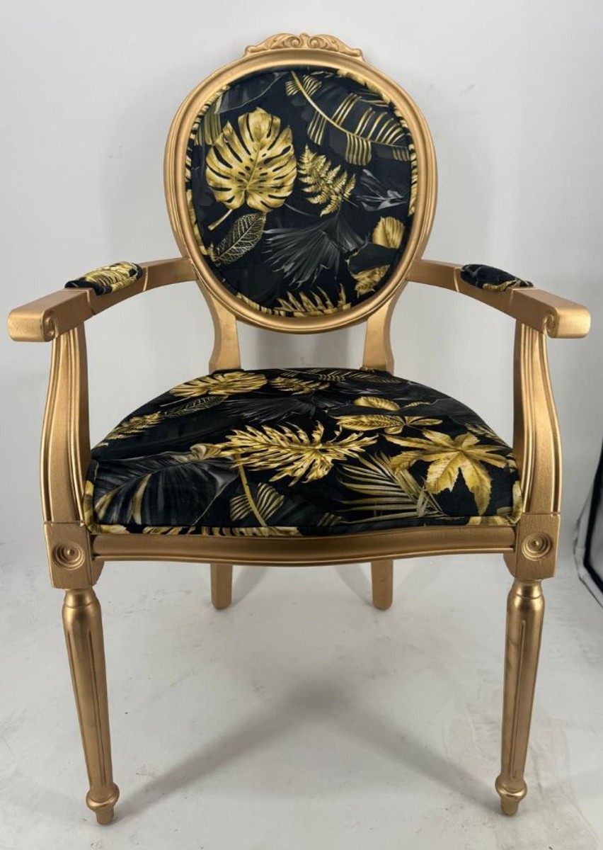 Casa Padrino Luxus Barock Esszimmer Stuhl mit Armlehnen Schwarz / Gold H. 95 cm - Barock Möbel