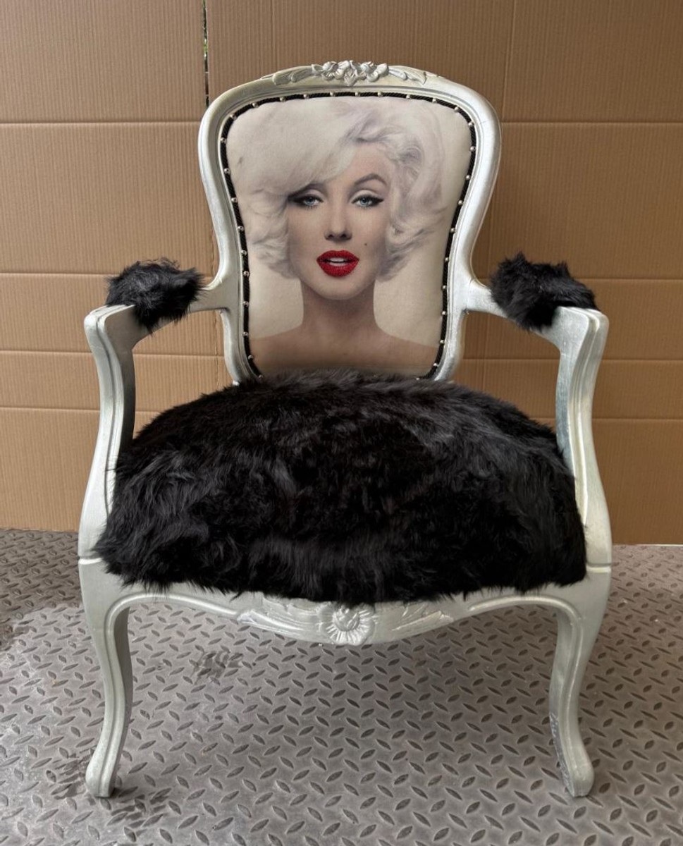 Casa Padrino Luxus Barock Salon Stuhl mit Armlehnen Schwarz / Silber - Barock Möbel