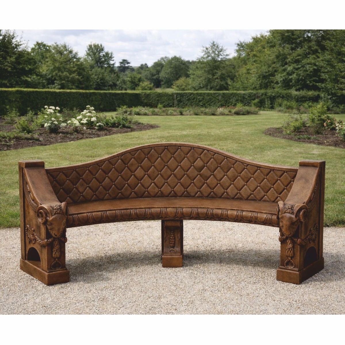 Panca da giardino barocco curva con teste di ariete decorative di Casa Padrino