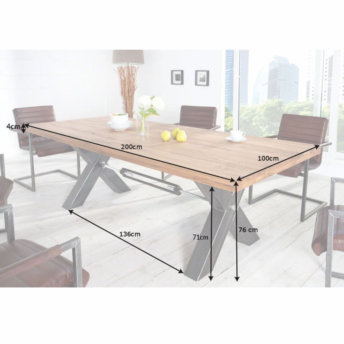 La struttura del tavolo in metallo nero, con una suggestiva forma a X, crea un contrasto emozionante: robusto, moderno ed elegante allo stesso tempo. Questa combinazione di legno e metallo è sinonimo di stabilità, durevolezza ed estetica senza tempo.