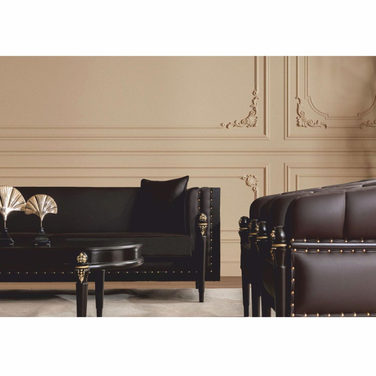 Ideale per hotel di lusso, eleganti aree reception e spazi abitativi in stile barocco, questo esclusivo set per il soggiorno si integra armoniosamente in interni sofisticati, sottolineandone il carattere raffinato.