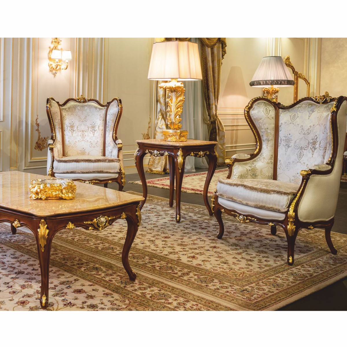 Realizzato con materiali di alta qualità e di facile manutenzione, questo tavolino da caffè colpisce per la sua eccezionale robustezza e la sua bellezza duratura. La sua superficie, facile da pulire, mantiene la sua lucentezza per molti anni, rendendolo un prestigioso punto focale di qualsiasi spazio abitativo, che si tratti di hotel di lusso, saloni classici o zone living esclusive.