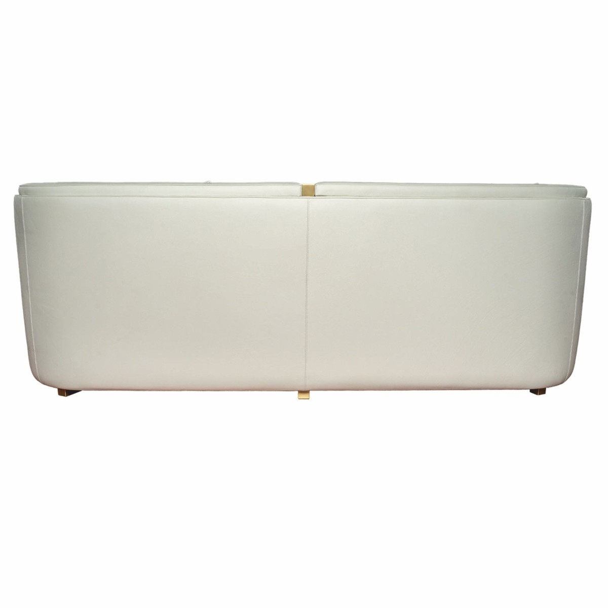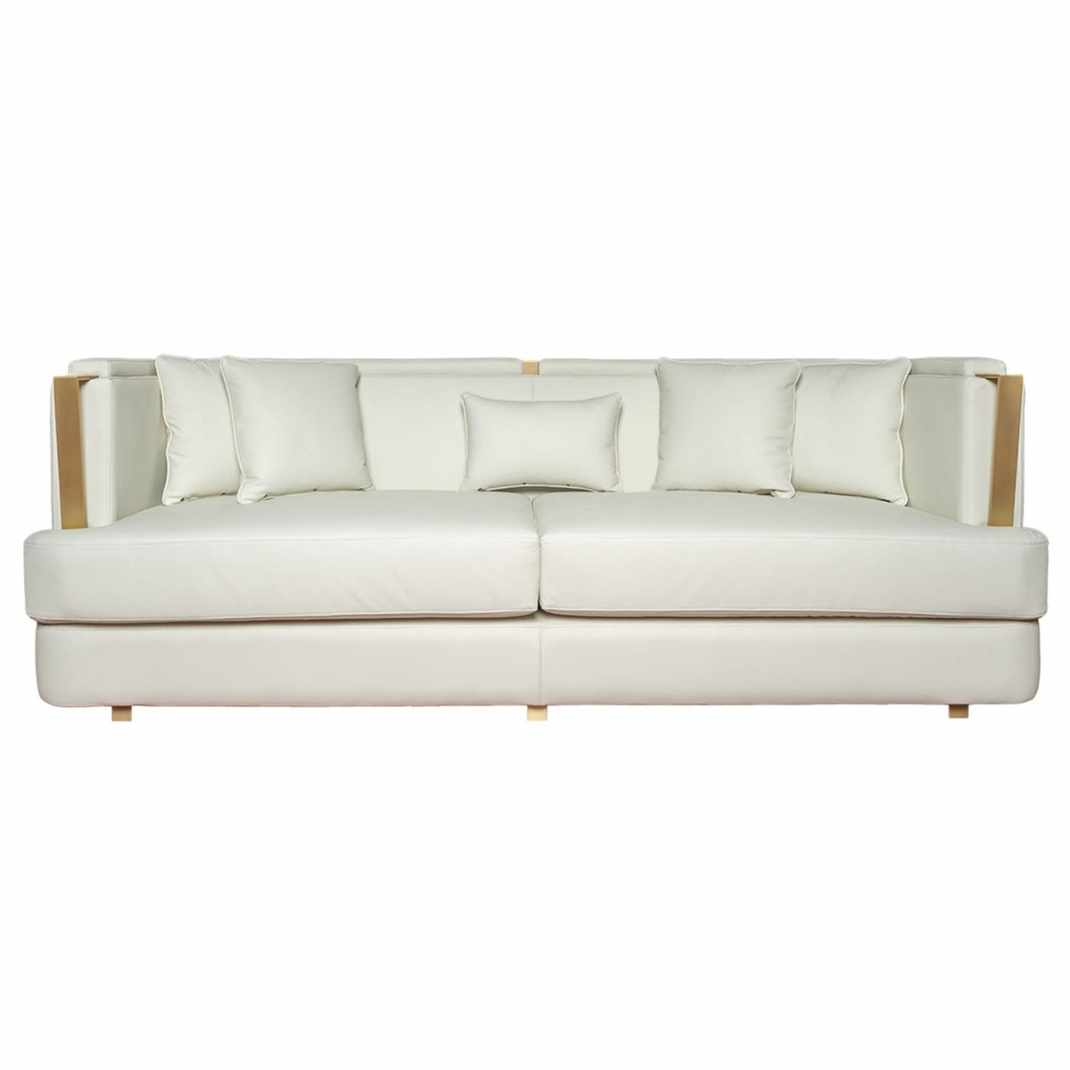 Der edle cremefarbene Stoffbezug sorgt für eine helle, ruhige Optik und ein angenehm weiches Sitzgefühl. Akzente aus messingfarbenem Metall setzen dezente, luxuriöse Kontraste und unterstreichen die exklusive Anmutung des Sofas. Die edle Verarbeitung bis ins Detail spiegelt den hohen handwerklichen Anspruch von Casa Padrino wider.